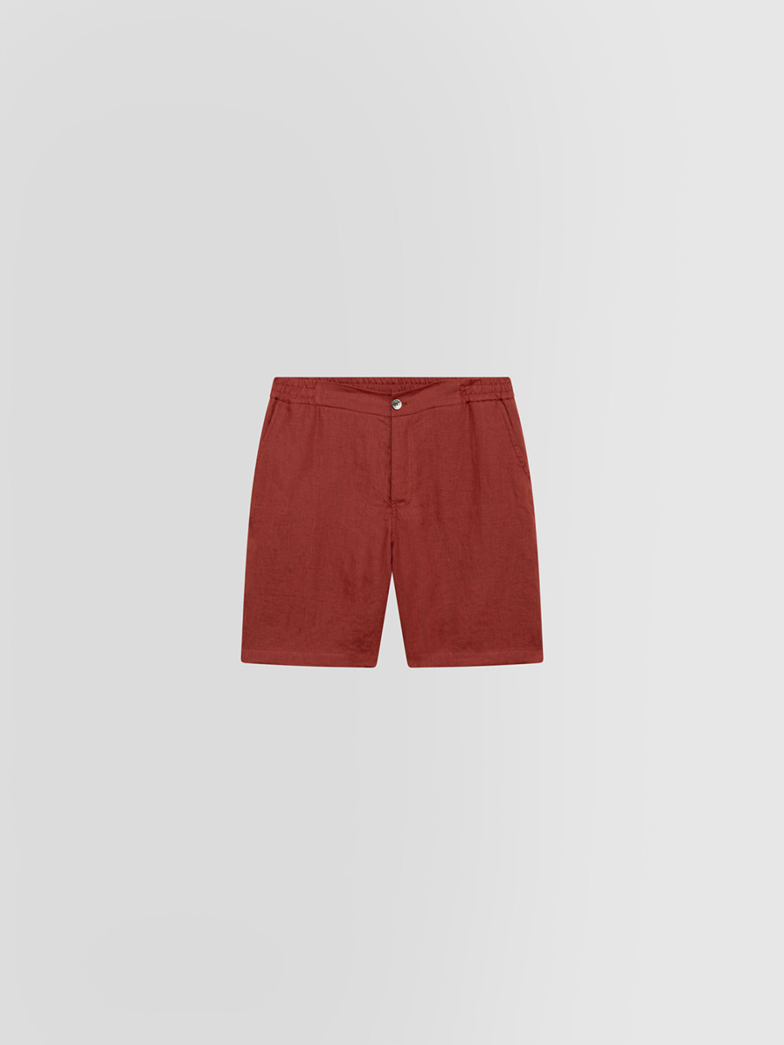 Bermuda in lino. Vita con elastico e bottone.