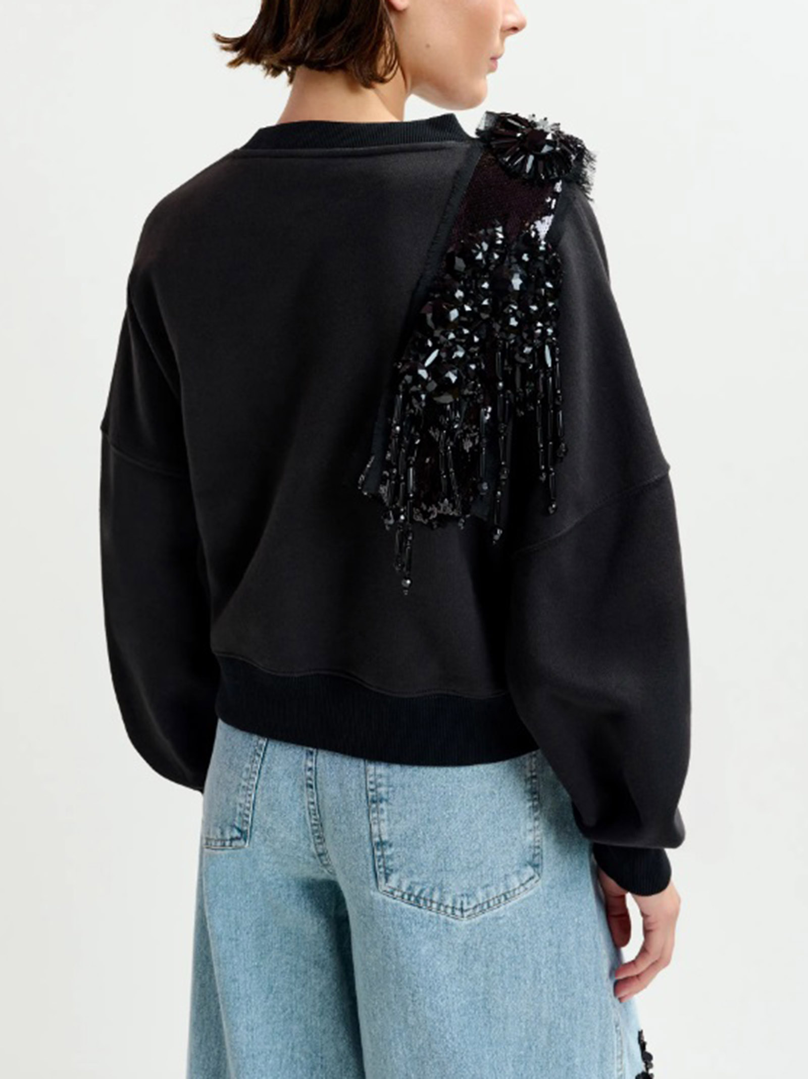 Pannello decorato sulle spalle con ricami di paillettes e perline