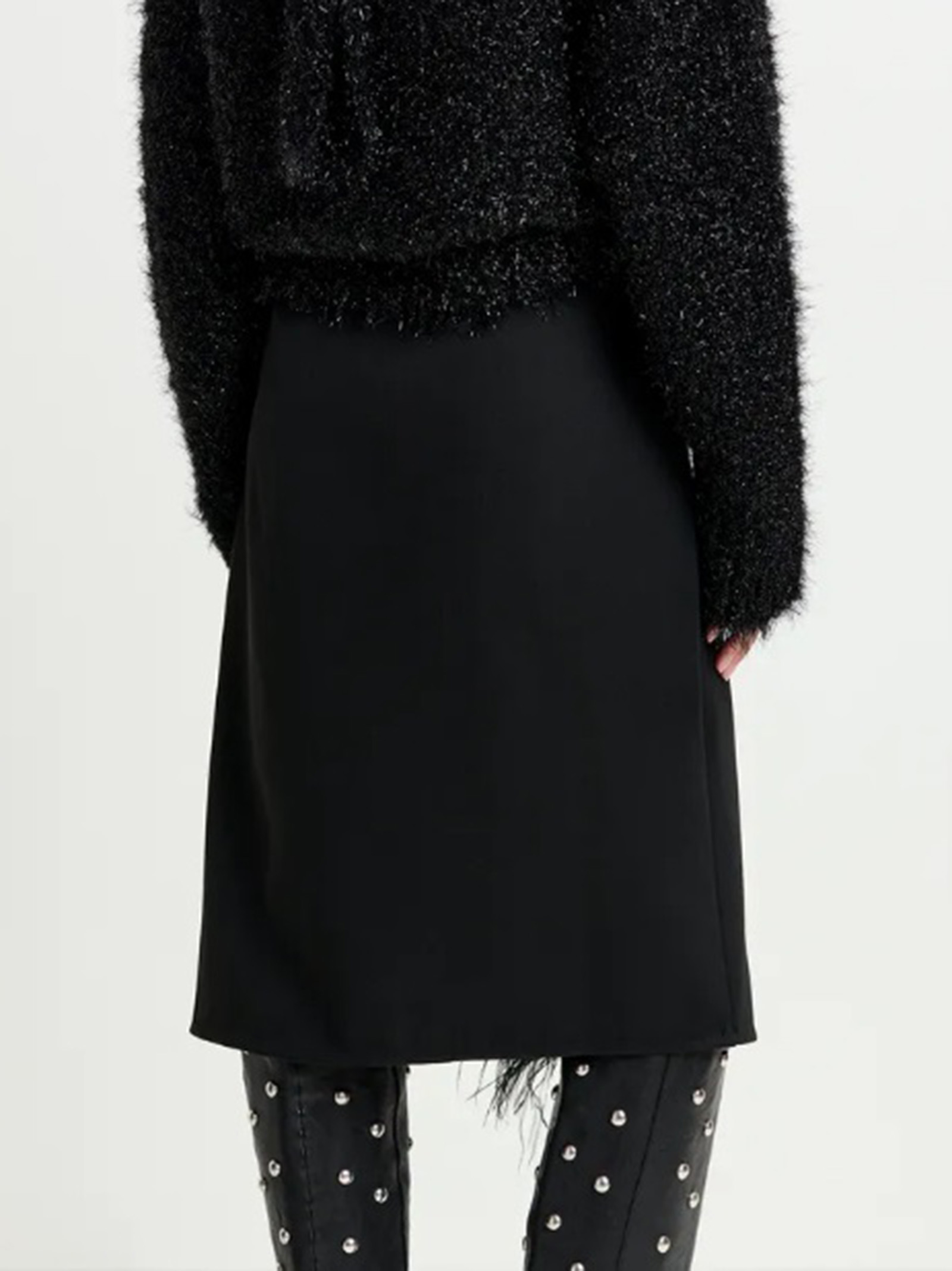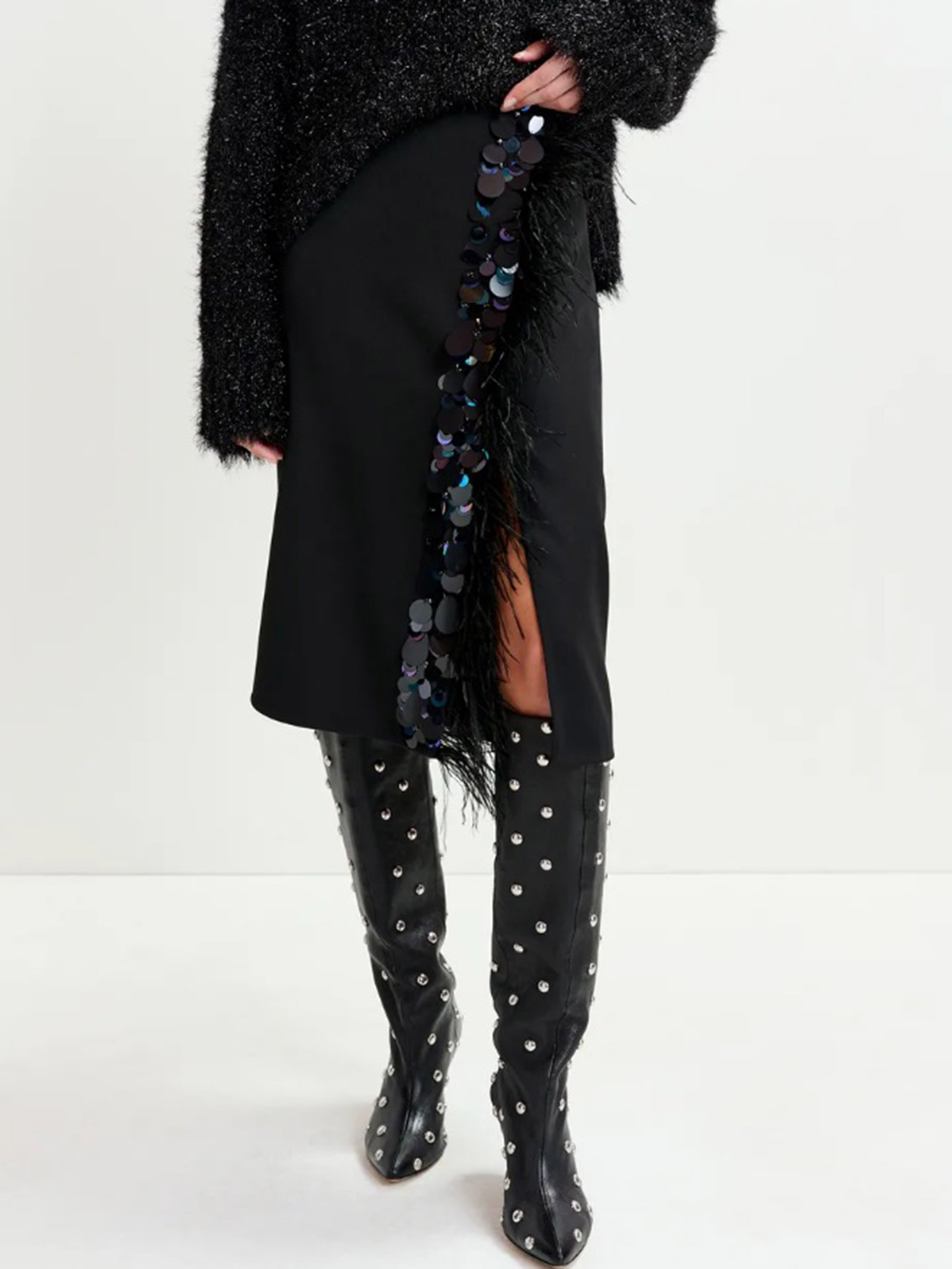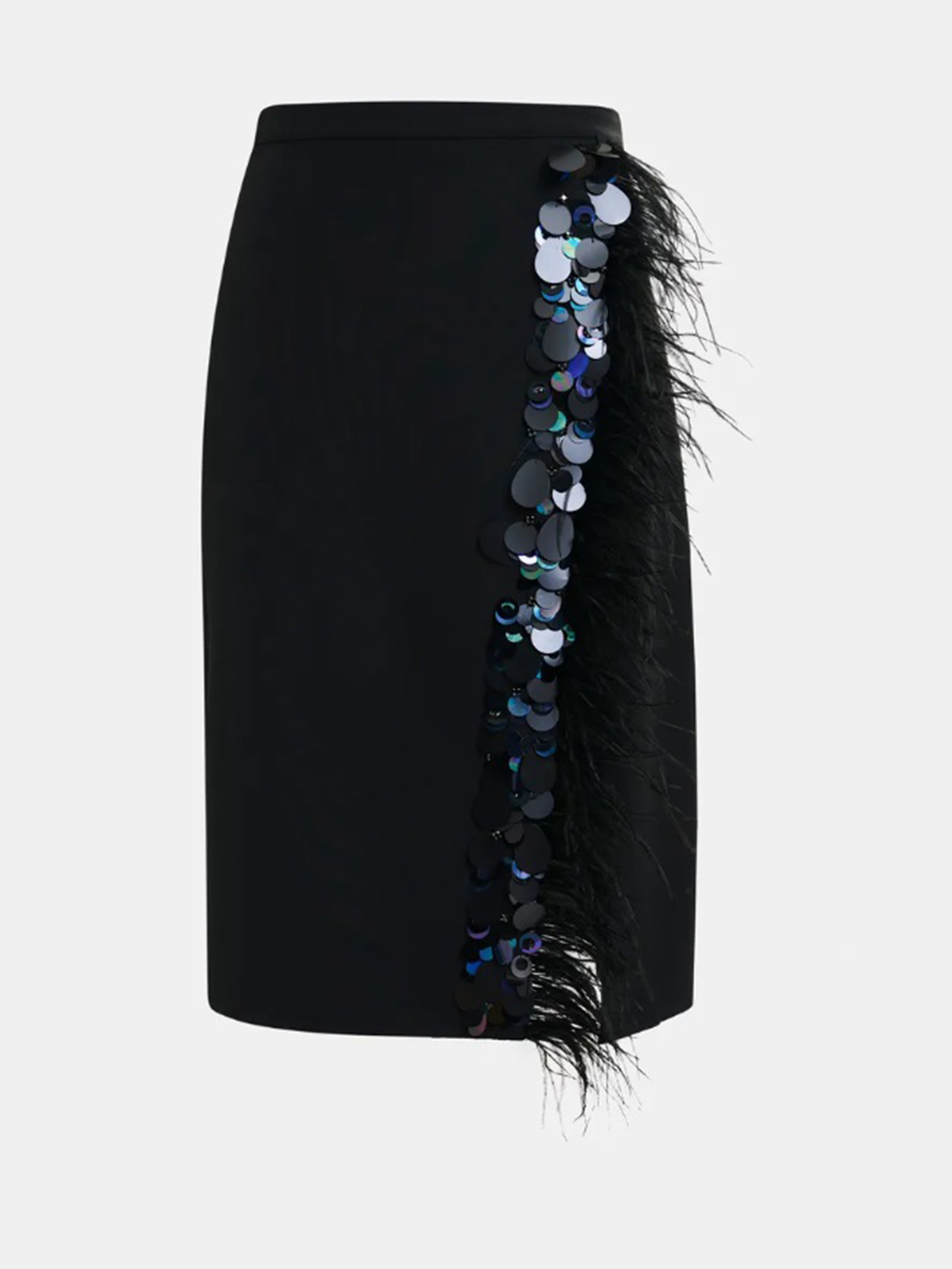 Gonna midi nera impreziosita da piume
