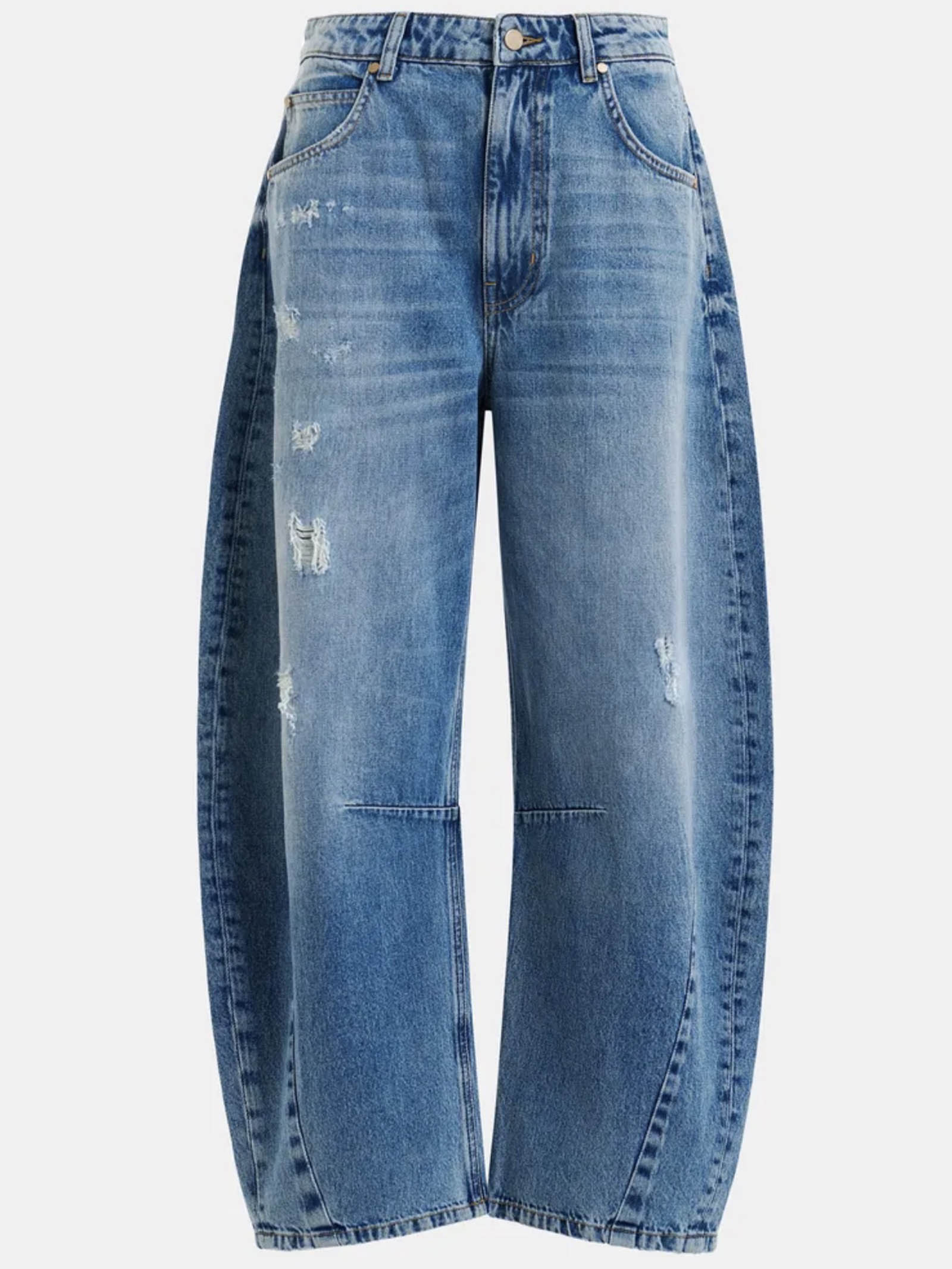 Jeans blu effetto consumato a taglio corto con gamba a botte in cotone biologico