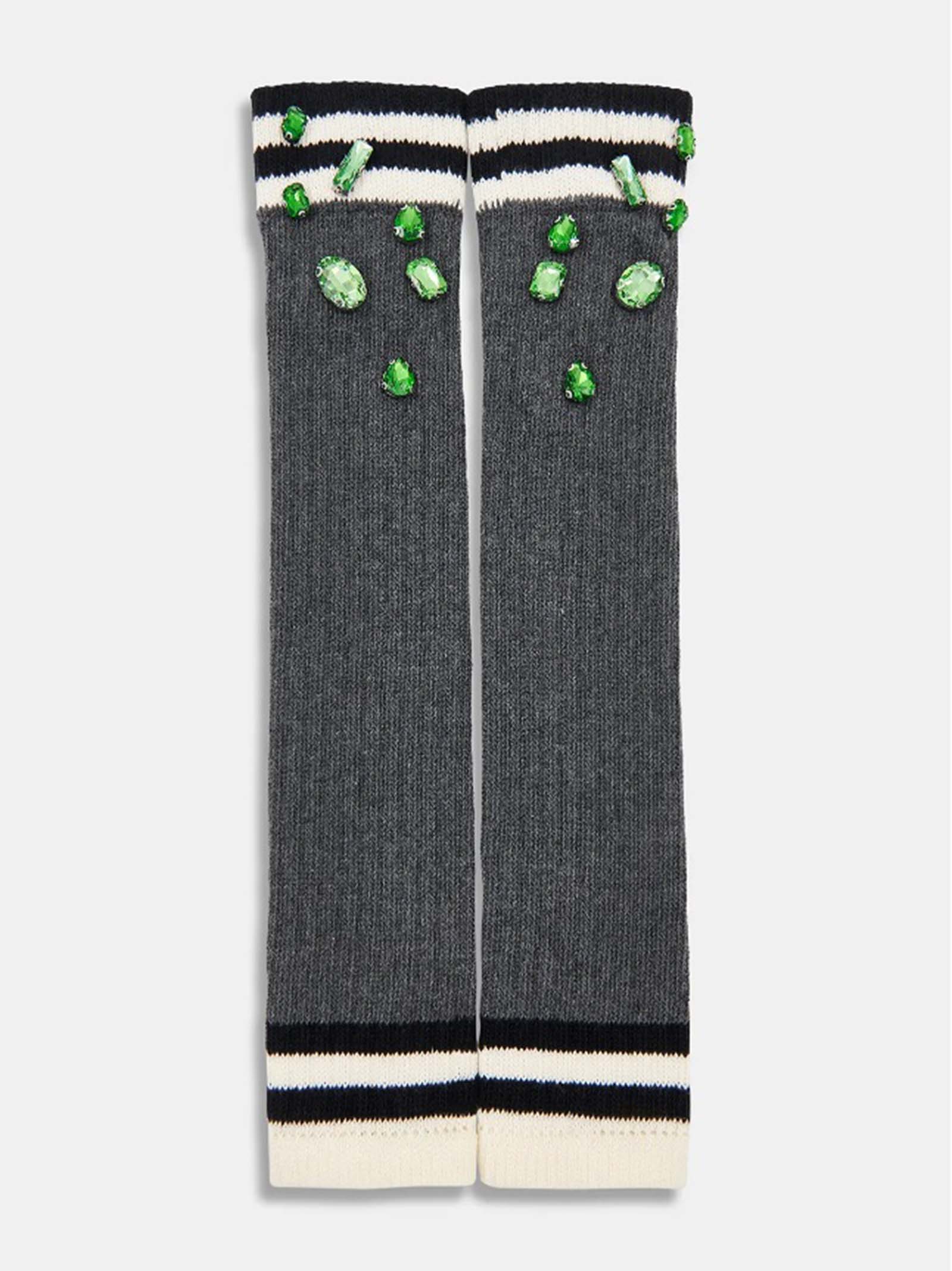 Scaldamuscoli in maglia a coste grigio scuro con decorazioni in strass