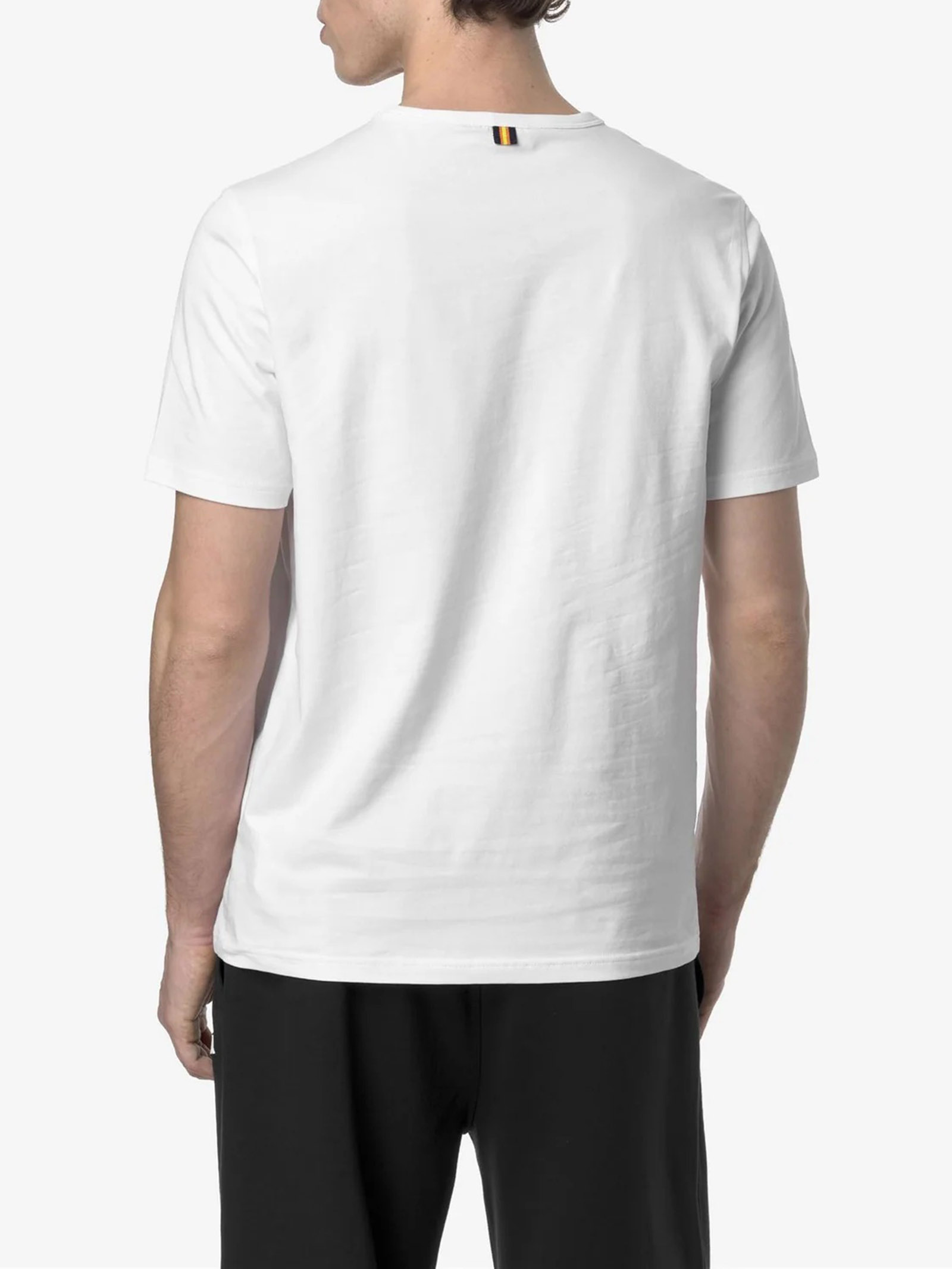 Adame è una t-shirt da uomo realizzata in jersey leggero di cotone stretch, morbido ed estremamente flessibile. Si caratterizza per il design pulito dalla linea asciutta e per il dettaglio sul retro personalizzato con i colori K-Way.