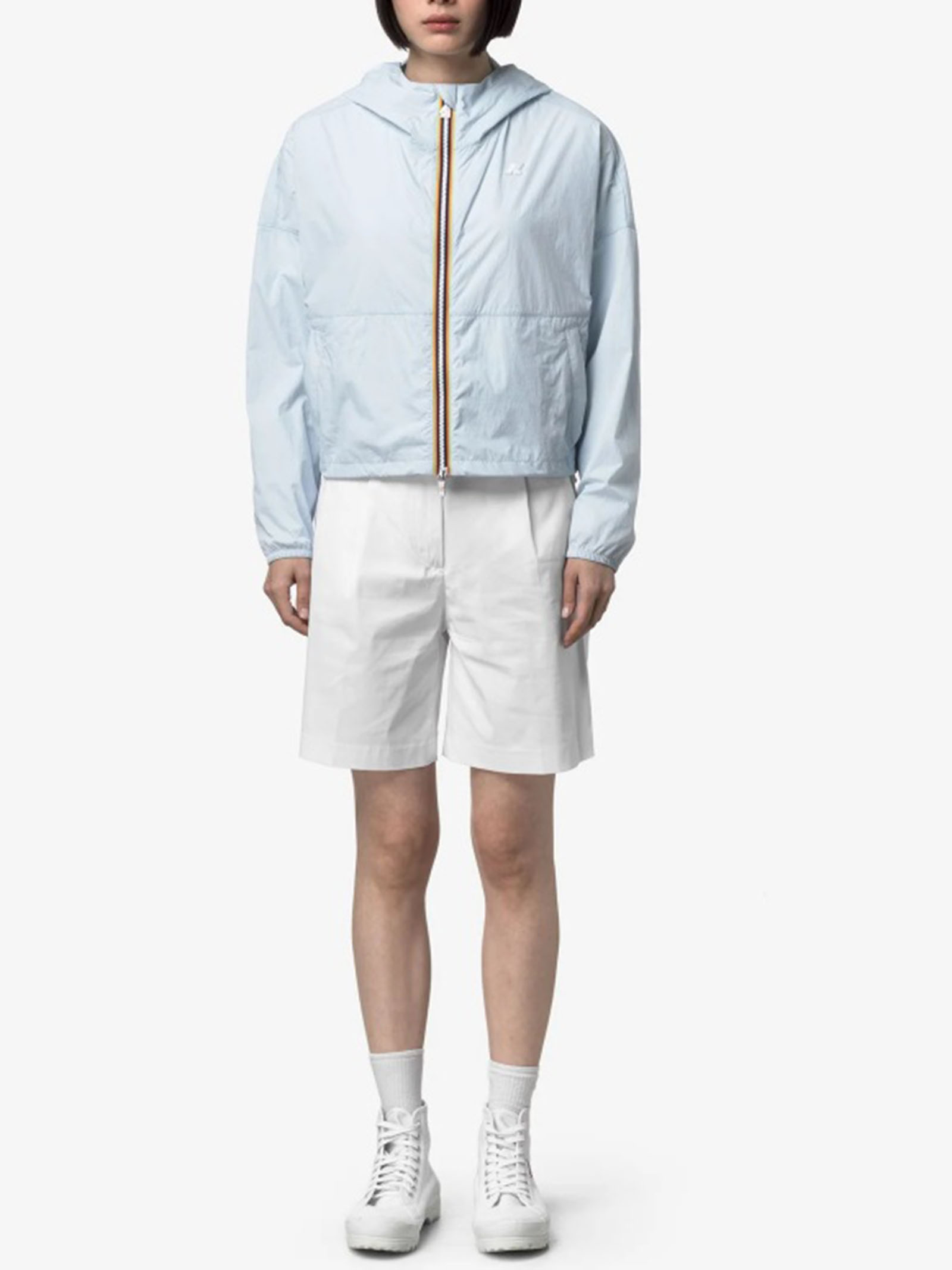 Gastonin è una giacca corta da donna adatta al clima mutevole delle stagioni più miti. Il modello, sportivo e funzionale, è realizzato in nylon leggero e traspirante e presenta cappuccio regolabile, polsini elastici e tasche laterali.