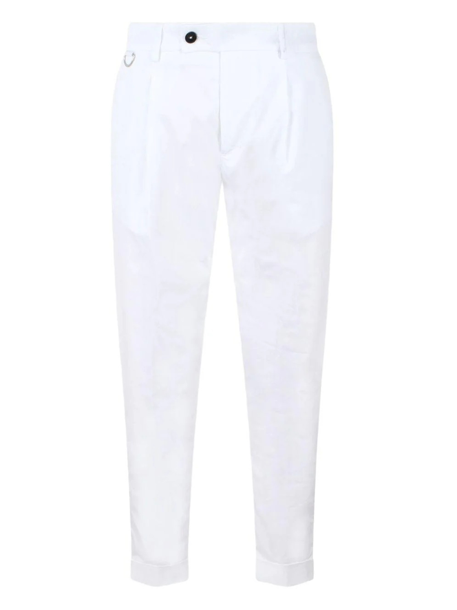 Pantaloni Carrot slim fit in misto cotone bianco con pinces sul davanti.