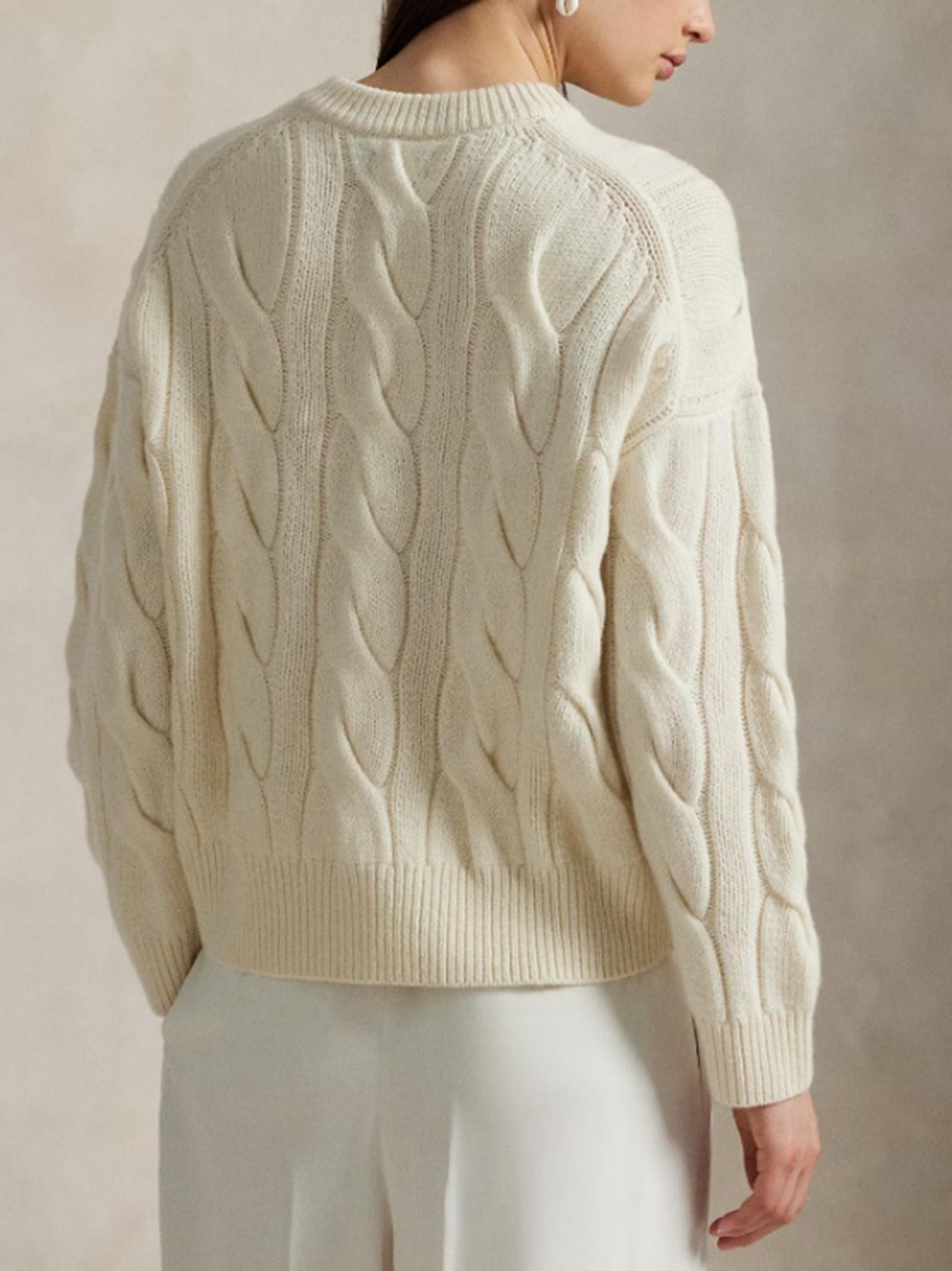 Maglia a trecce in lana e cashmere, panna